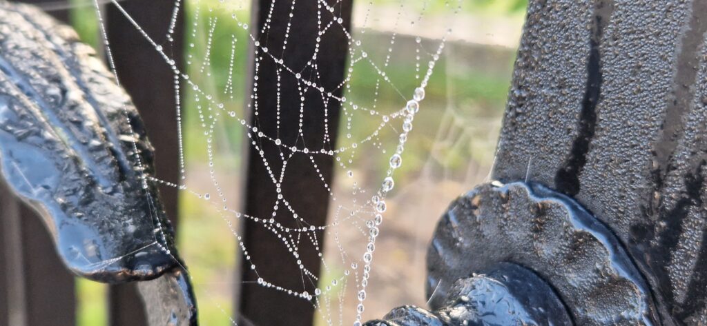 No i wkroczył październik z jesienną pogodą. Zrobiło się chłodno, mokro, jesiennie. Październikowe poranki w ogrodzie witają mnie jesienną rosą. Takie koraliki zdobią ogród.