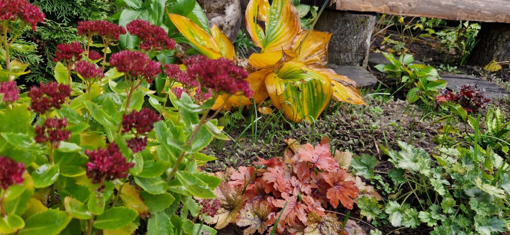 Jest to też czas na przesadzanie i rodzielanie różnych bylin. U siebie podzieliłam i zrobiłam małe sadzonki miodunki. Podzieliłam też żurawki i rozchodniki. Chcę mięć więcej rozchodników na przyszły sezon. Jesienią bardzo ładnie kwitną i przebarwiają się.