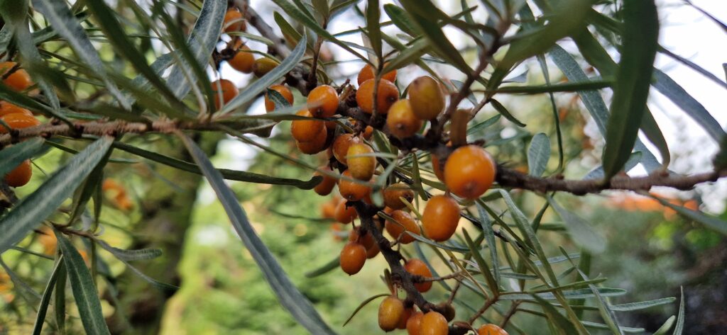 Dojrzewa rokitnik, ale z jego zbiorem poczekam do pierwszych przymrozków.