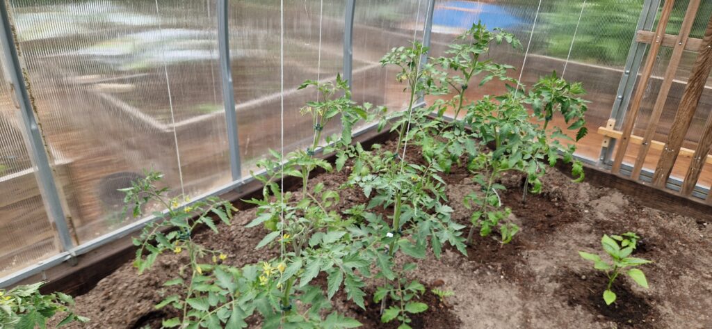 Usuwamy też ostatnie, dolne liście naszym pomidorom. Pilnujemy temperaturę w tunelu, wietrzymy by nie była zbyt wysoka. Optymalna to 25 stopni, latem jednak często będzie ona wyższa, dlatego ważne jest wietrzenie.
