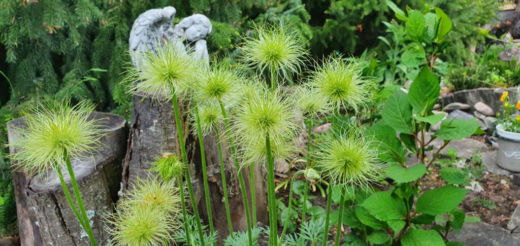 Gdy przekwitną tworzą ciekawe, dekoracyjne owocostany. Na długiej łodyżce tworzy się puchaty owocostan. To dodatkowy walor dekoracyjny sasanek. U mnie pięknie wygląda na tle pieńków drewna.