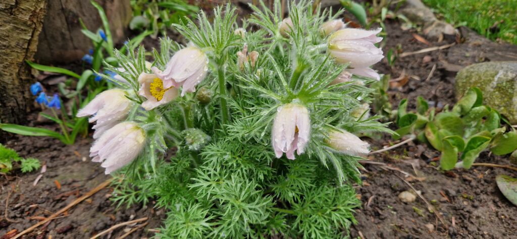 W kwietniu, maju zaczynają kwitnąć. Ich kwiaty są dzwonkowate mocno owłosione. Występują w kolorze białym, różowym, fioletowym. Podczas kwitnienia ich kwiaty bardziej się otwierają, by pokazać swoje żółte pręciki, ukryte pod płatkami. Ich kwiaty mają około 6cm średnicy, nie są malutkie. Młode egzemplarze mają tylko po kilka kwiatów, czasami tylko jeden, ale jakże urokliwy. Starsze egzemplarze mają tych kwiatów nawet do kilkunastu.