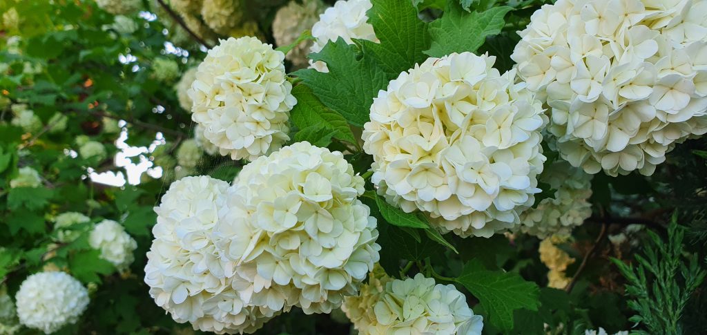 W tym samym starym ogrodzie rosła też ogromna kalina koralowa. Ją także zaprosiłam do siebie. Takie kule tworzy latem.