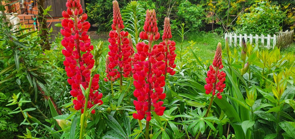 Łubin to bardzo dekoracyjna roślina. Dorasta nawet do 120cm. Jego stojące na baczność kwiatostany, niczym świece widać z daleka. Występuje w różnych kolorach od bieli po różne odcienie różu, fioletu, czerwony i żółty.