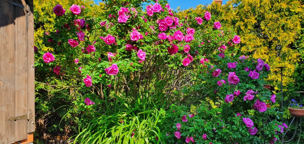 Z kwiatów, które darzę sentymentem jest moja ” dzika róża ” rugosa. Ona też przywędrowała do mnie ze starego wiejskiego ogrodu, z mojego dzieciństwa. Tego miejsca już nie ma , a róża jest u mnie i cieszy swym zapachem i urokiem.