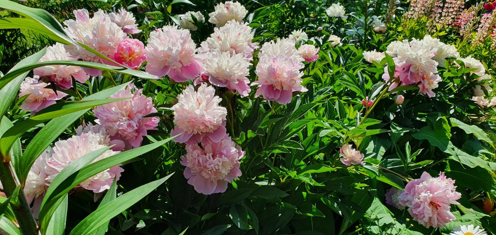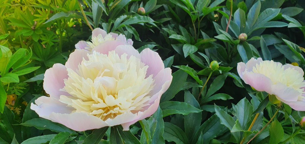 Pamiętam gdy kupiliśmy działkę, był to pusty, zarośnięty zielskiem teren. Jaka była moja radość, gdy w rogu działki znalazłam dwa liście piwonii. Rosła sobie bidulka w chaszczach i czekała na mnie, aż ją znajdę. Mam ją do dziś, oto ona. W grupie raźniej, dostała dwie towarzyszki i odwdzięcza się pięknym kwitnieniem.